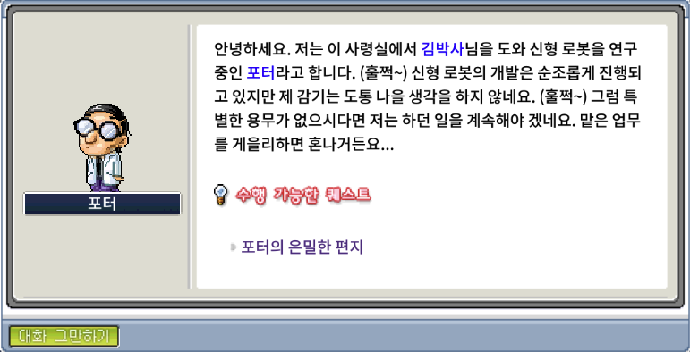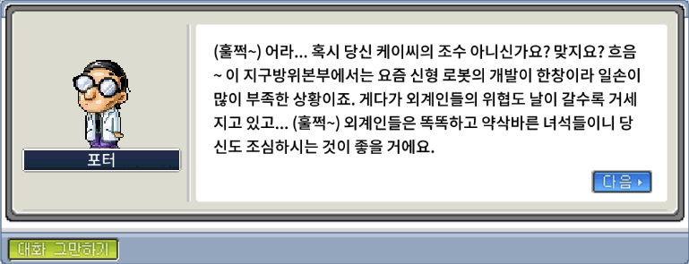 롬바드의 조종 프로그램 관련 퀘스트를 완료하고 포터에게 다시 돌아가보니...