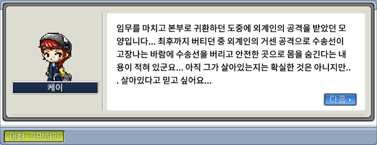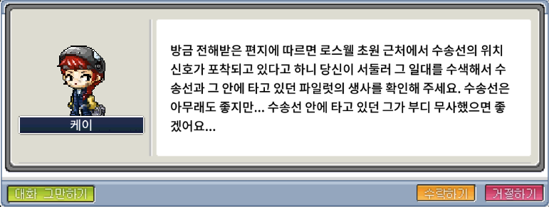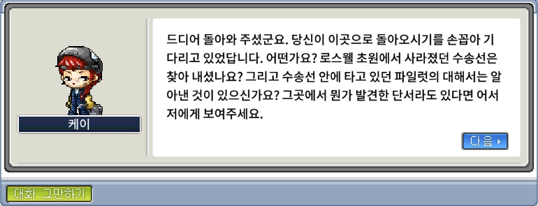 다시 케이에게 돌아가 파일럿의 편지를 전달해주자.